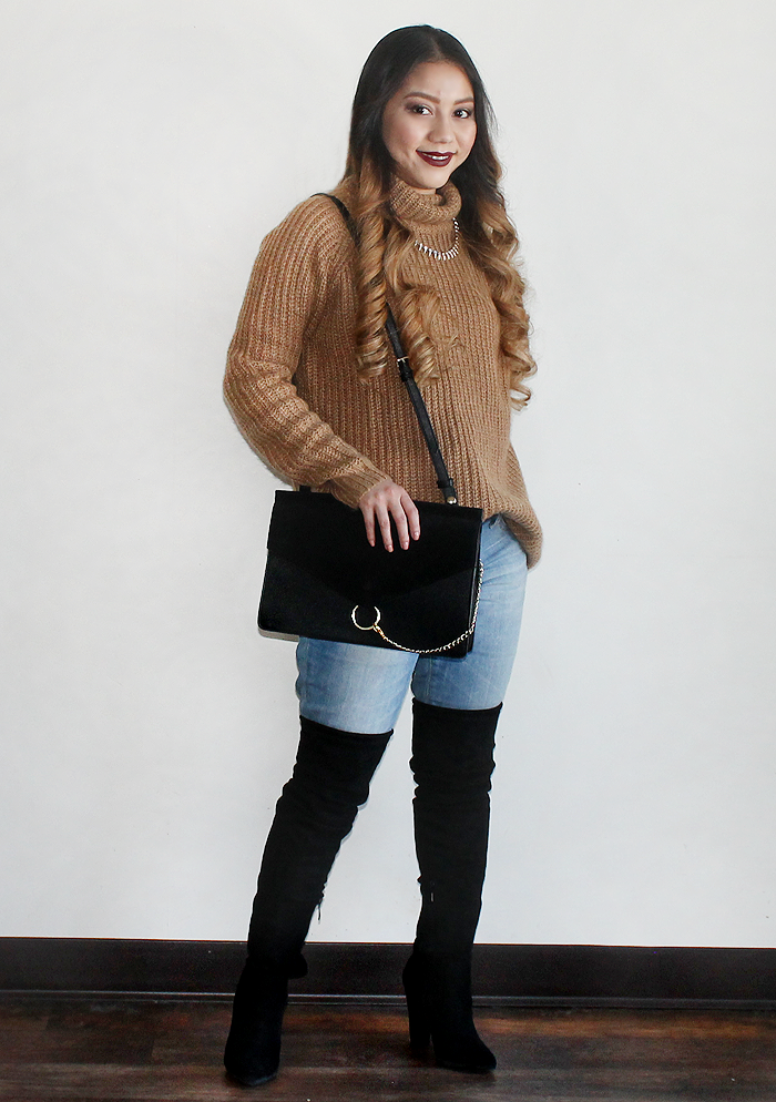 Tan Knitted Thick Turtleneck from